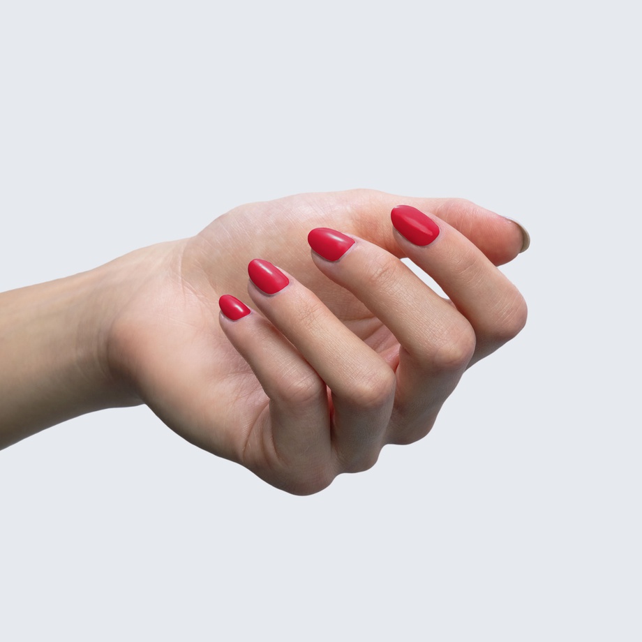 Here’s a poppy red polish with a certain je ne sais quoi.