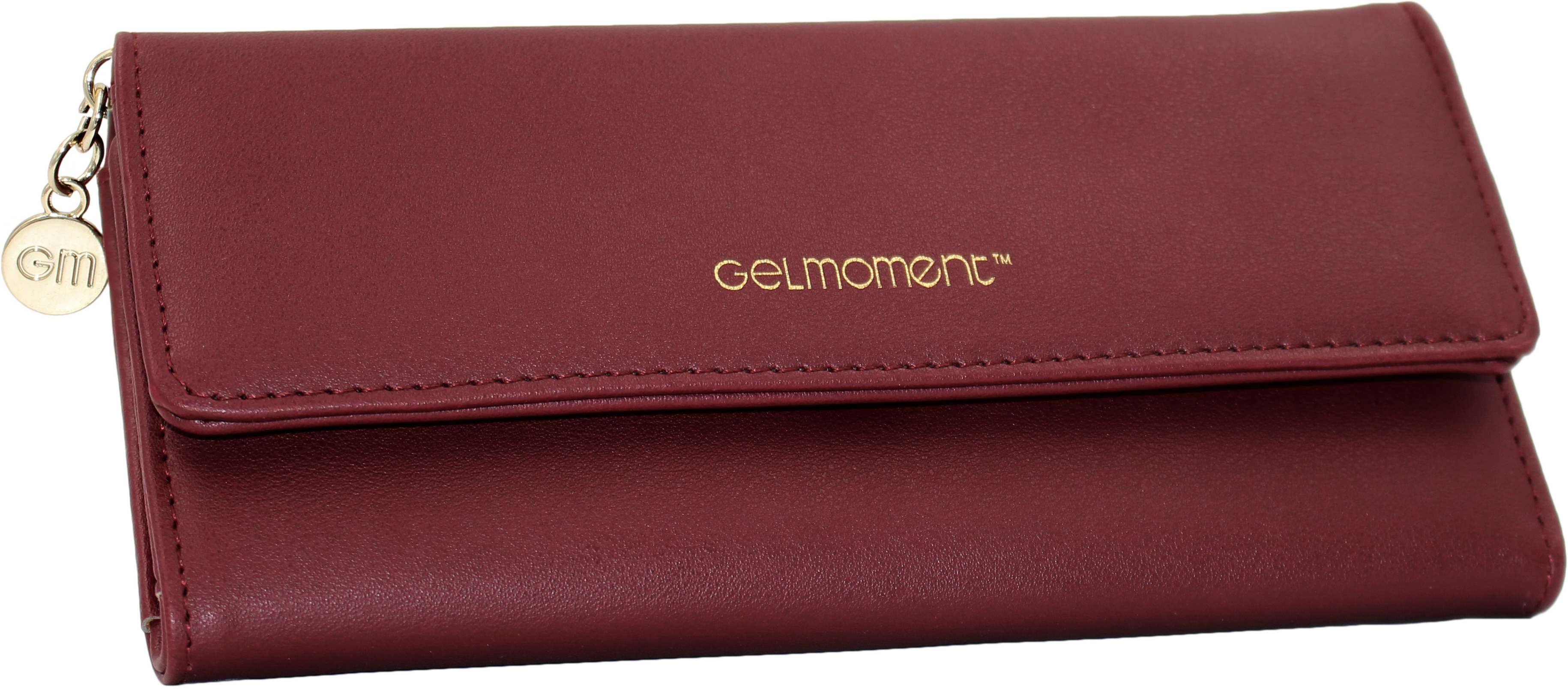 With pockets to hold everything you need, this beauitful GelMoment branded tri-fold wallet will be a conversation starter when you are out and about shopping! Featuring a shiny GelMoment logo charm and goldtone embossed logo on the front, this wallet will show the world the professional that you are!